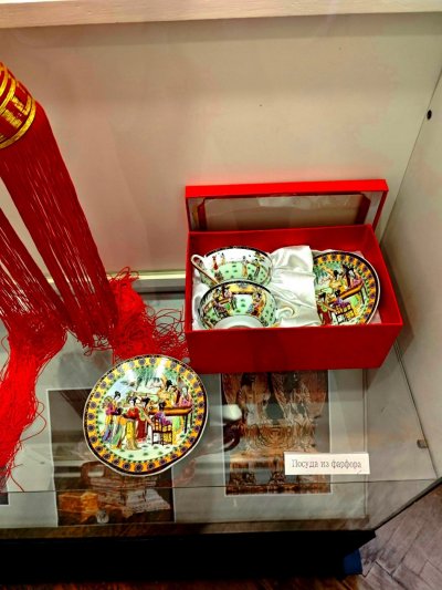 Кроме завораживающих мастерством исполнения картин, на выставке «Страна драконов» представлены: традиционные китайские «узлы», фарфор, изделия из камня, шёлк, а также тибетские ритуальные маски и кинжал Пхурбу.